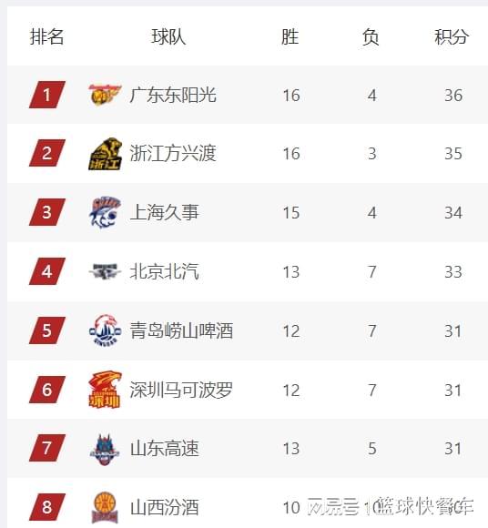 网页版地址-CBA积分榜最新排名出炉!广东逆袭广厦杀回第1:辽篮跌至第15名?